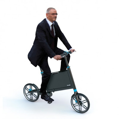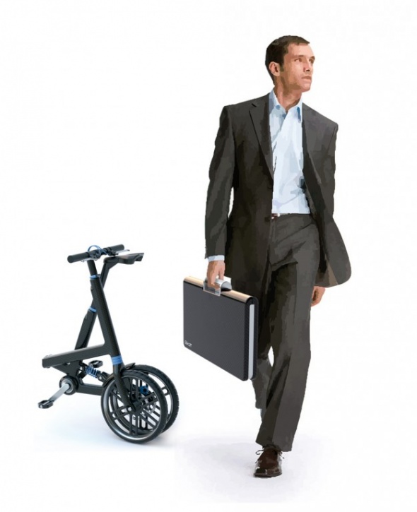 Bikoff by Argentinean industrial designer Marcos Madia is a small bike that is easily folded up and features a briefcase in the frame, making it the ideal mode of transportation for executives. When the briefcase is removed, the bike folds in half for easy storage. The carbon fibre used in the manufacturing also means minimum weight but maximum mechanical resistance.