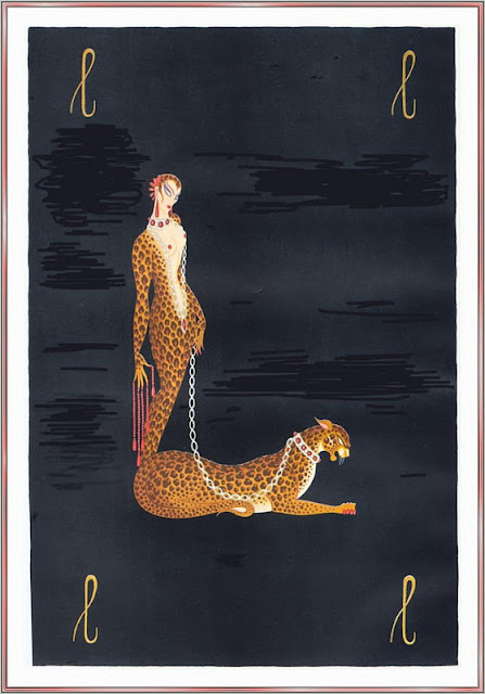 There’s a particularly iconic series of Erté artworks that you’ve no doubt seen before: a woman – swathed in fur and adorned with a headpiece, cutting a silhouette that’s since become the recognisable epitome of Art Deco decadence – walks a lithe, silver-collared greyhound with all the drama of one who’s just walked onto a stage. Like much of Erté’s work it sweeps the viewer up into another era.