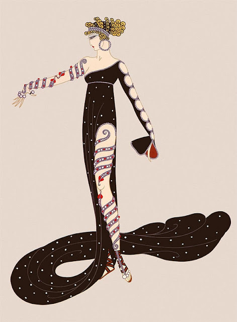Erté’s most prolific time as an artist was during the 1920s and 30s. With a swirl of exotic influences including European Orientalist art, Byzantine mosaics, Greek vases, and Egyptian motifs, his illustrations remain inspirational for both the artistic and the fashionable.