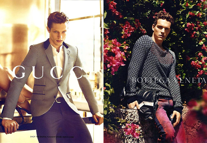 While usually having a bevy of models in their ads, Gucci went solo this season with new and fresh faced Greg Nawrat. It also seems that Bottega Veneta had the same idea and tapped spring show opener Alex Cunha to star in their campaign, shot by contemporary artist Jack Pierson.